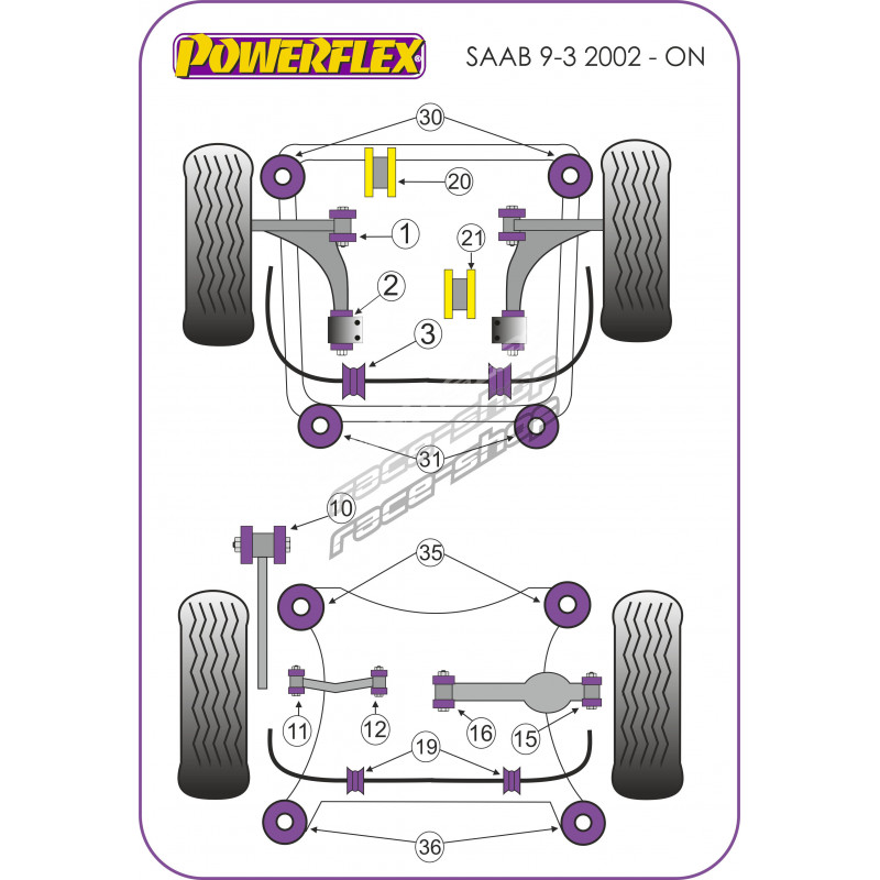 Powerflex Долен тампон за двигател,преден вътрешен (Diesel) Saab 9-3 (2003-2014)