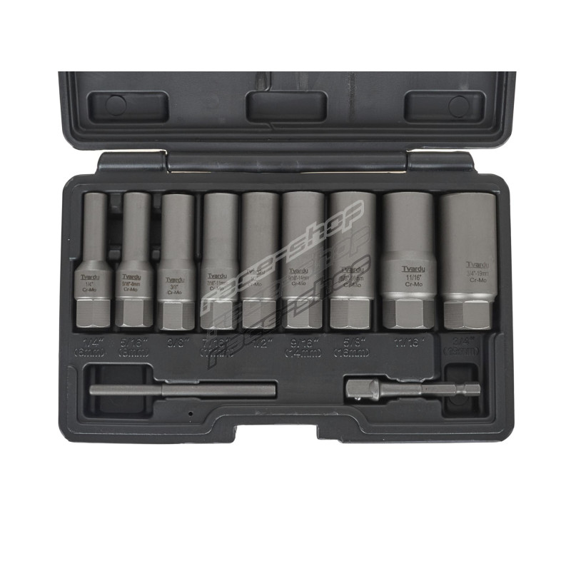 Комплект дълги вложки за счупени винтове, изработен от висококачествена CR-MO стомана, включва 11 размера (6mm-19mm). Проектиран за лесно отстраняване на стегнати, ръждясали или повредени винтове.Изпратете на оператора на магазина въпрос за този продукт.