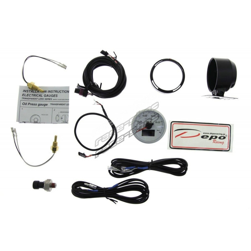Измервателен уред DEPO 4в1 60mm бял – Налягане на маслото+ Температура на маслото + Температура на водата+ Волтметър