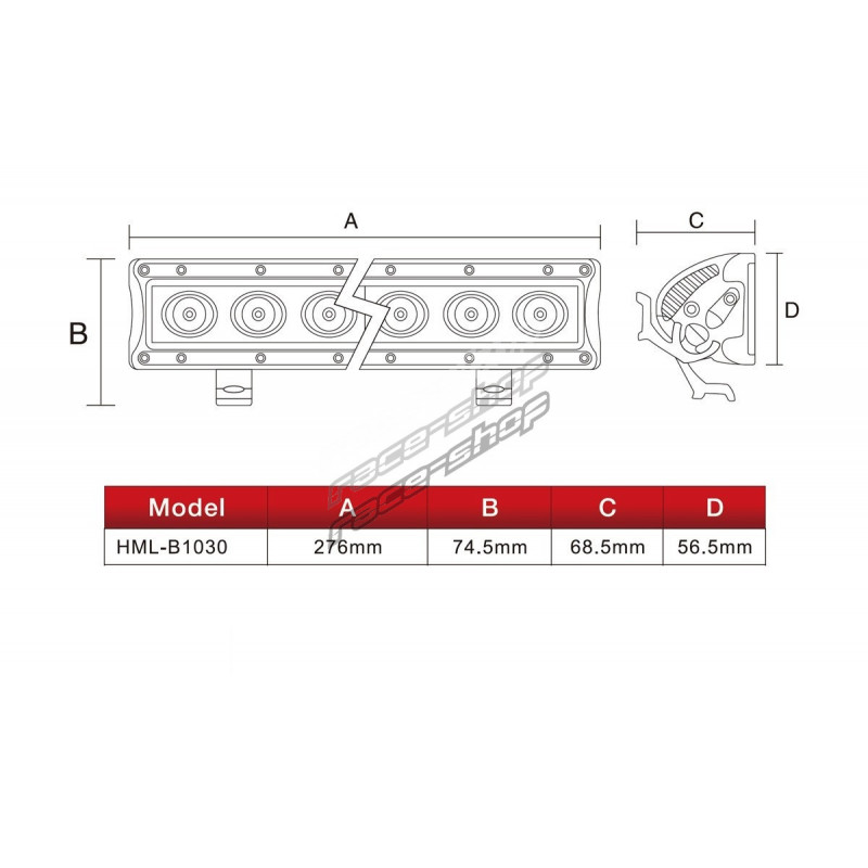 Допълнителна Led светлина 30w flood 276x74,5mm