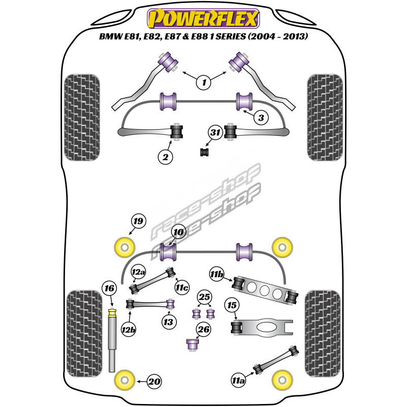 Powerflex Тампон за трансмицията преден кръгъл BMW 1 Series E81, E82, E87 & E88 (2004-2013)