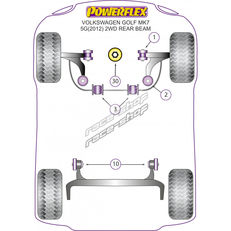 Powerflex Долен тампон за двигател вътрешен (голям) Diesel Volkswagen Golf MK7 5G 2WD Заден мост