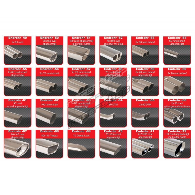 Моля, напишете кода на върха на ауспуха към бележката преди да поръчате. (например: Endrohr-1)