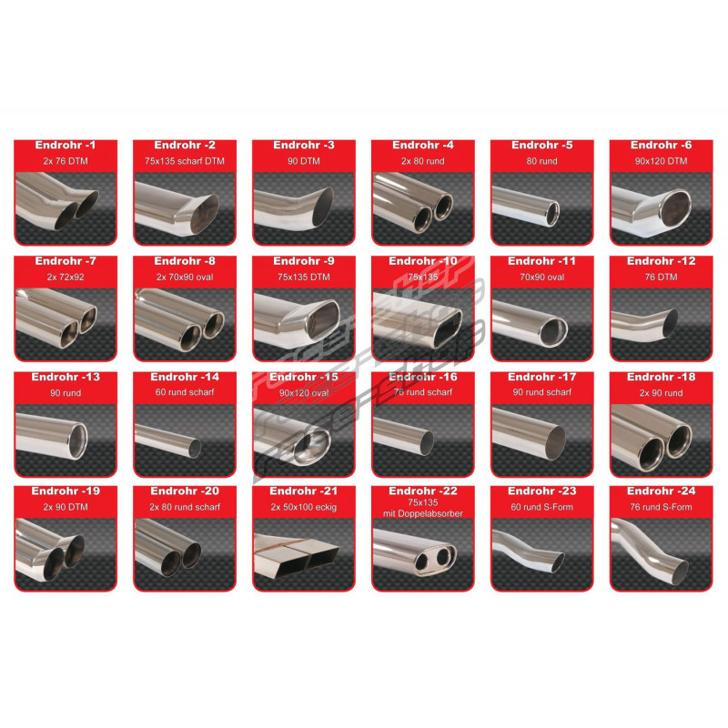 Моля, напишете кода на върха на ауспуха към бележката преди да поръчате. (например: Endrohr-1)