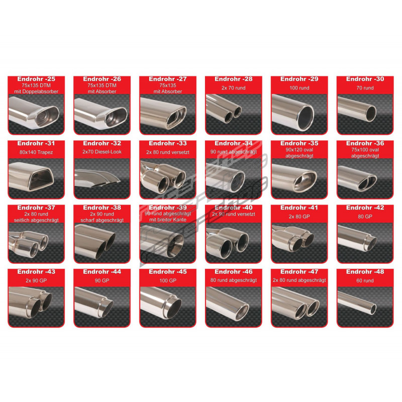 Моля, напишете кода на върха на ауспуха към бележката преди да поръчате. (например: Endrohr-1)