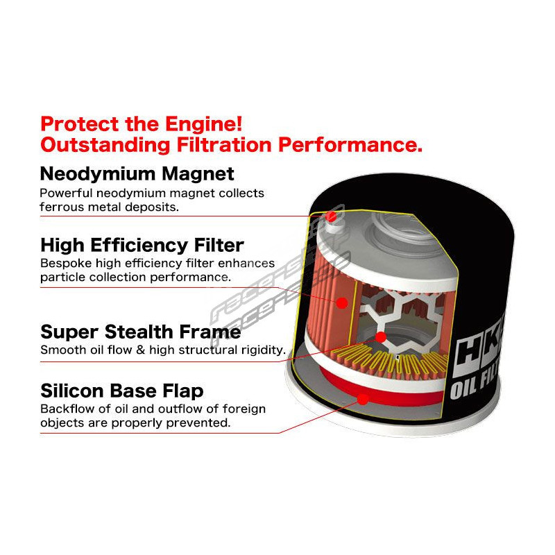 Разработени вътрешно в HKS, тези маслени филтри имат само едно нещо на ум: производителност. В сравнение с оригиналните филтри, те осигуряват дебит с до 30% по-висок и ограничават спада на налягането на маслото. Смазването на двигателя е подобрено, като същевременно се запазват изключителни филтриращи свойства: това е просто най-добрият маслен филтър, наличен за спортни автомобили.