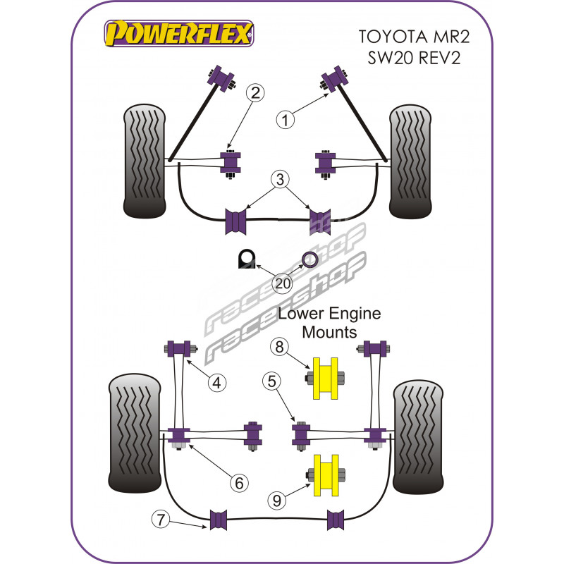 Powerflex Заден вътрешен Track носач тампон M14 болт Toyota MR2 SW20 REV 2 до 5 (1991 - 1999)