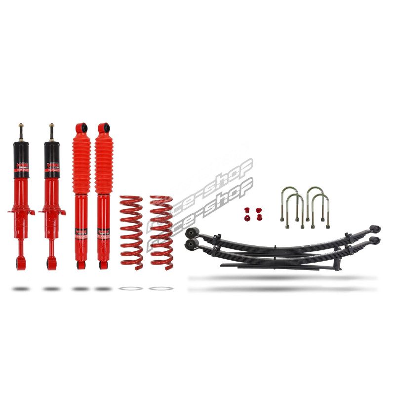 Всеки комплект включва висококачествени амортисьори Pedders TrakRyder Foam Cell, предни спирални пружини, задни листови пружини, U-образни болтове и монтажни втулки. В някои приложения са включени и допълнителни въздушни възглавници за по-ефективно управление на променливите натоварвания. Напълно сглобените предни амортисьори Ezifit позволяват бърз монтаж без необходимост от компресори за пружини или повторно използвани компоненти.