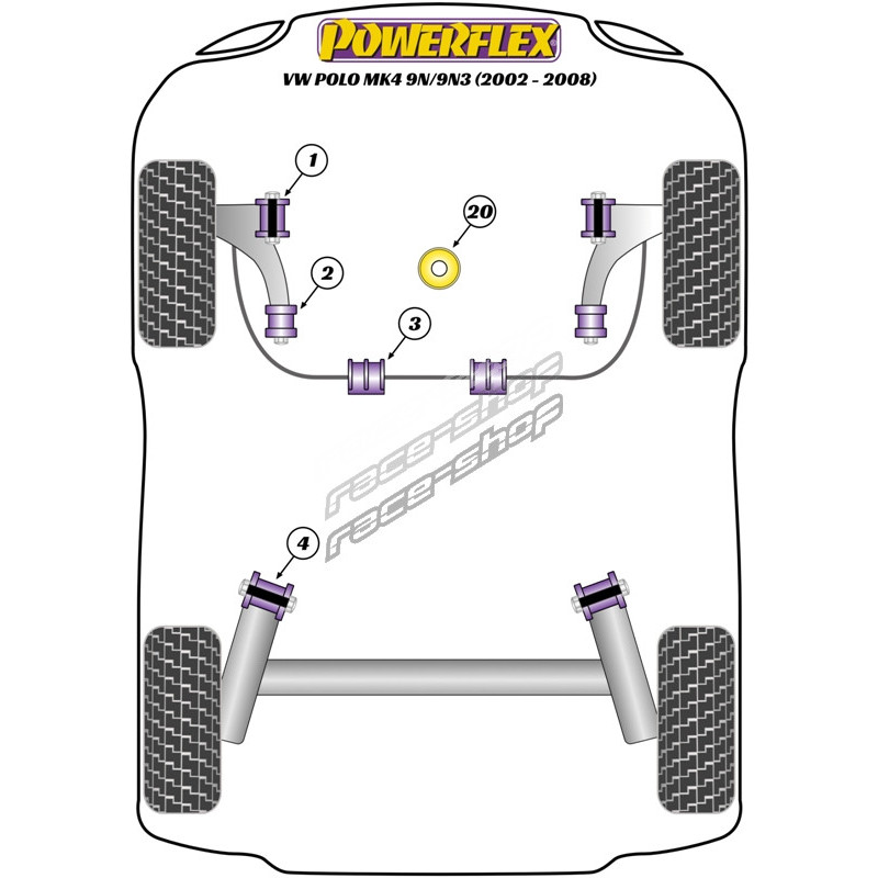 Powerflex Тампон за преден носач предна страна 30мм с регулиране на камбер Volkswagen Polo MK4 9N/9N3 (2002 - 2008)