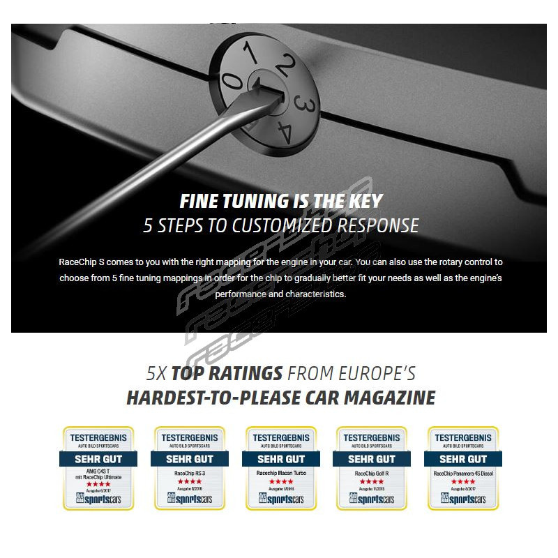 RaceChip® е компания за модификация на софтуер за автомобилна техника от 1994 г. Тези допълнителни модули са инсталирани между двигателя и серийния блок за управление на двигателя. Функцията на този продукт е да приема и оценява сигналите на контролните устройства (няколко хиляди пъти в секунда) и след това да ги модифицира, за да увеличи и оптимизира производителността. Монтажът е много прост (в рамките на 10-15 минути) и без загуба на гаранция за нови автомобили. Продуктите на компанията не пречат на основната система на автомобила, която поддържа всички оригинални функции активни. RaceChip® е TÜV сертифициран от 2009 г.
