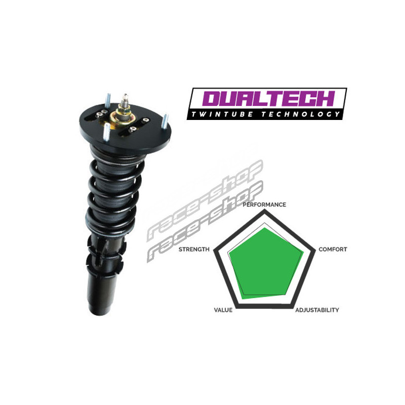 Окачването HSD Dualtech с регулируема спирачна система е универсално и бюджетно подобрение, предназначено за ентусиасти, търсещи подобрено управление и естетика, без да се прави компромис с ежедневния комфорт. Идеален е за улична и случайна употреба на писта, тъй като предлага отличен баланс между производителност и комфорт, което прави HSD Dualtech много популярен избор сред автомобилните ентусиасти.