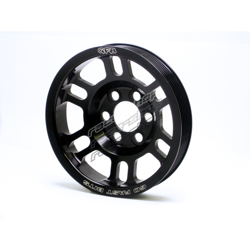 Подобно на всички олекотени макари на GFB, този започва живота си като единична заготовка от алуминиева сплав 6061 и след това е прецизно обработен с ЦПУ до точни толеранси. След това е анодизиран в черно за скрит вид и превъзходна устойчивост на износване.