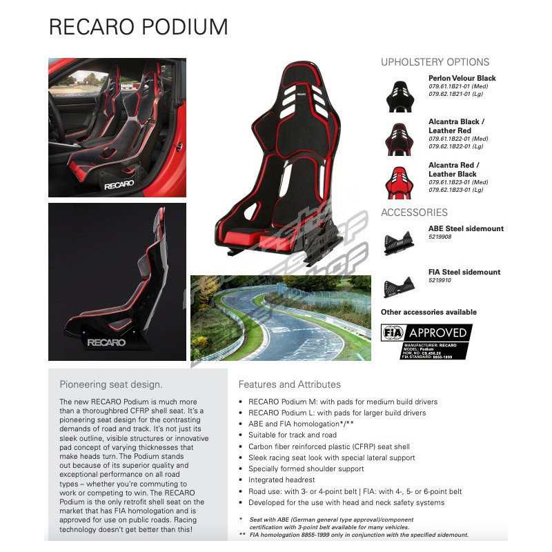 ABE homologations are valid only for a complete seat + mounting plates + RECARO brackets