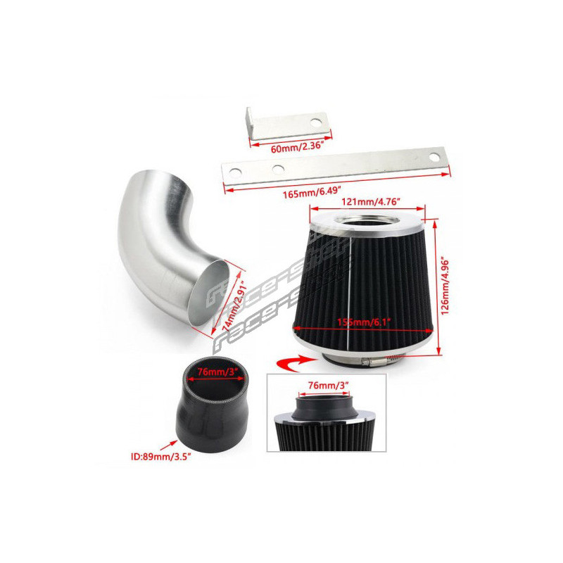 RACES Universal Cold air intake kit 3" (76mm) - Black