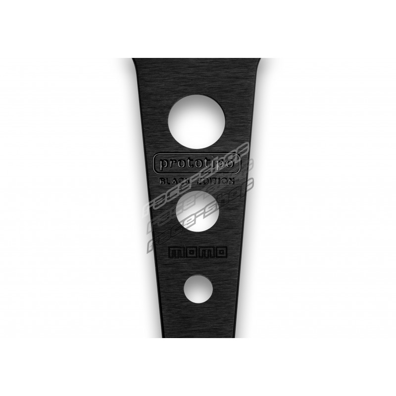 Този волан е допълнен с уникален матов и лъскав черен бутон MOMO Arrow Horn, MOMO Prototipo Black Edition е най-добрият избор за тези, които желаят да запазят характера на своя автомобил, докато освежават интериора.